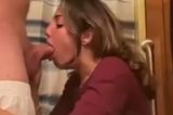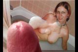 Cumming on my fat wifes tits |